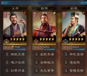 如果不想给散记的话就用三势阵版的:贾诩 太史慈 许攸,战法搭配和战力差不多,就区别个阵法。