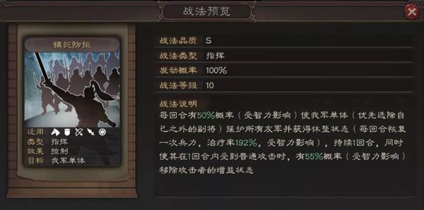 刮骨疗毒能够回血 移除各种负面状态,大概是藤甲队必备,锋矢阵也是司马盾的标配,增加副将坦度,增强主将的输出伤害。