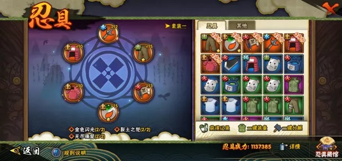 一般来说,对于战力不高,忍具储备量不多的玩家,小编推荐直接装满6件如今最高品质的忍具。