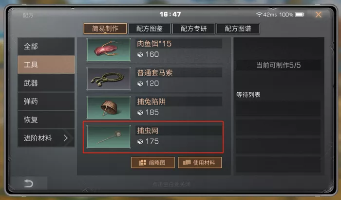 在随身配方——工具中可制作捕虫网,在夜晚时带上捕虫网去到狩狼野,就能够捉萤火虫啦。