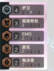 4护卫、3超级粉丝、2EMO、2朋克、2裁决使