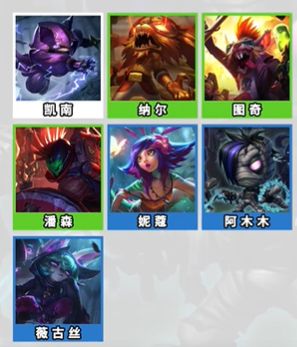 凯南、纳尔、图奇、潘森、妮蔻、阿木木、薇古丝