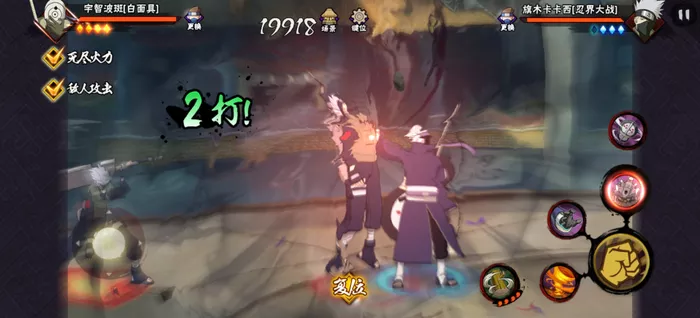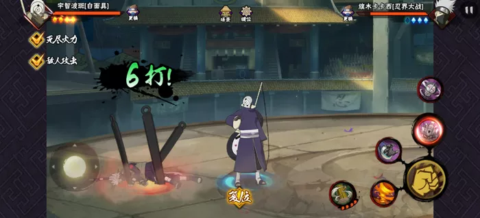 2、白面具首次登场碰见卡卡西,应该是所有成年版本都会有,防反住就能够触发,并且切换到神威空间场景,但是因为练习场不会产生场景更替,接下再防反就是普通的了。