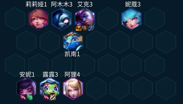 6-5上9,9级就是找高费卡的琴女来补充伤害了,另外就是追三星的露露和艾克还有阿狸了,后续多的法师装备允许给露露做辅助装备,电刀羊刀纳什,让露露技能释放更快帮助打控制,很多时候残局就是靠着露露重点一手控制秒掉敌方C位。