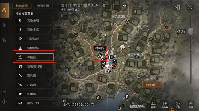 种植园位于朱石岩道入口处,幸存者可通过地图快捷传送至种植园,消耗一定营地贡献进行采摘,每日采集上限为10个。