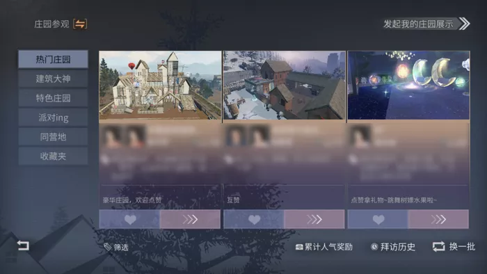 幸存者们可以在庄园展示界面拜访他人庄园,通过地图传送至拜访营地的种植园。