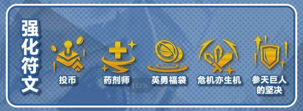 符文方面比较推荐续航与D卡类符文:投币、药剂师、英勇福袋、危机亦生机、参天巨人的坚决这几个最优。其他也可考虑:吸血习性、治疗法球、理想主义、不屈意志、珠光莲花、背水一战、常客优惠、黄金门票、激昂墓志铭、源计划巨快、大百宝袋、投资回报、假人辅助、施法即是防御等。