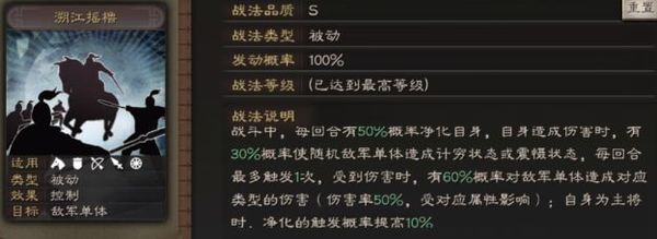 SP吕蒙的战法集合了净化、计穷、震慑、受伤攻击的机制,基本就像是一个可以输出、面板又极佳的程普 受伤反击的夏侯惇。因为啥功能都有,所以在队伍搭配上就比较灵活。