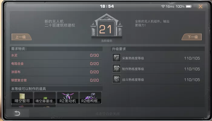 值得一提的是,升级到21级庄园将赠送α版的R2无人机模块,可以让幸存者们抢先体验新模块的功能。