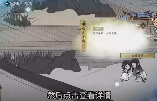 1、进去菜单中的收藏界面,找到绘卷,然后在界面的右下角会产生两个小人,点击查看详情就能进去。