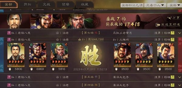 总结:以上都是刚刚打的无九八,只能说恐怖如斯,打的基本上都是主流强队,有一些还是高红阵容,这套阵容算是给兄弟们一个桃园新的玩法思路,尤其是拥有高红SP关羽的玩家来说,这套阵容基本上没吃什么核心战法,结果却能打出这样强势的多穿战报,十分值得给一个盾兵宝物,至于战法基于自己的共存队伍微调!