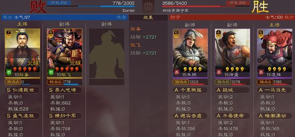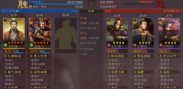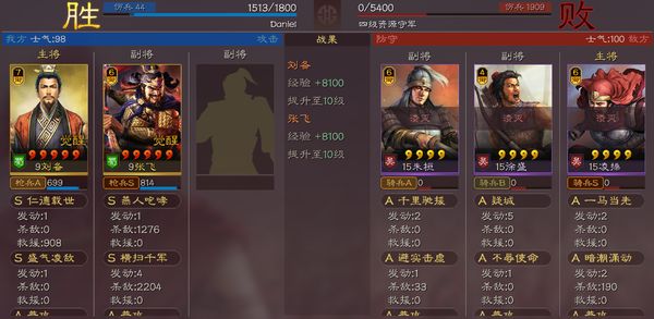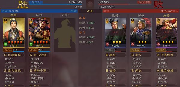 战报如下,果然很好欺负,直接一步到10级(打三级地,那得3场到10级)。因为刘张双将开荒,打的就是一个低损快速觉醒刷五的套路,因此等级非常重要,千万不能刷那些难以升级的地浪费体力,浪费体力就等于自减开荒速度。