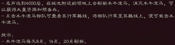 同时,木牛的等级是跟你所拥有武将的最高等级有关的。10级、20级、30级、40级、45级分别对应1-5级的木牛流马。(第十章之前的任务,建议全部、快速完成)