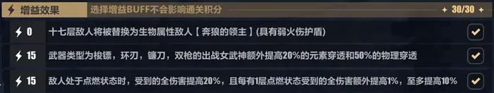 增益效果:第17层boss选北风狼,此后再选两条15的增益效果。