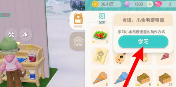 2、而后选取【小金毛康宝蓝】食谱,并点击【学习】按钮。