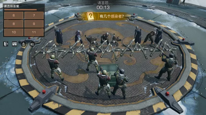 在废土生存,敏锐的观察力必不可少,考官芬里尔带来四轮计数考题,挑选正确答案得到团队分。