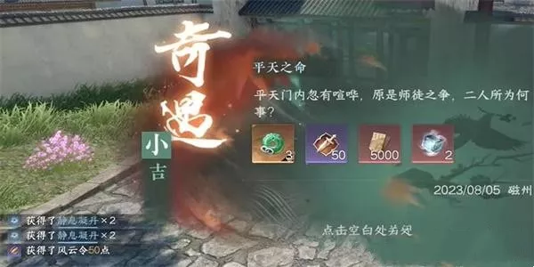 1、玩家首先完成平天门所触发的任务即可解锁平天之命奇遇。
