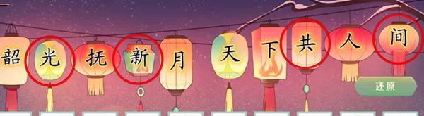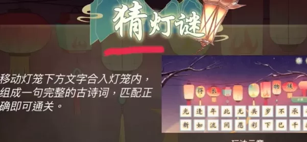 2、需要玩家们将下面的字移到上面的灯笼里构成完成的句子。