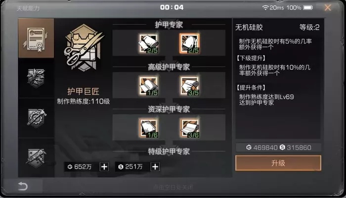 学习该技能后可解锁职业专属半成品“无机硅胶”,一样是制作一些道具的必需品,建议点到二级。