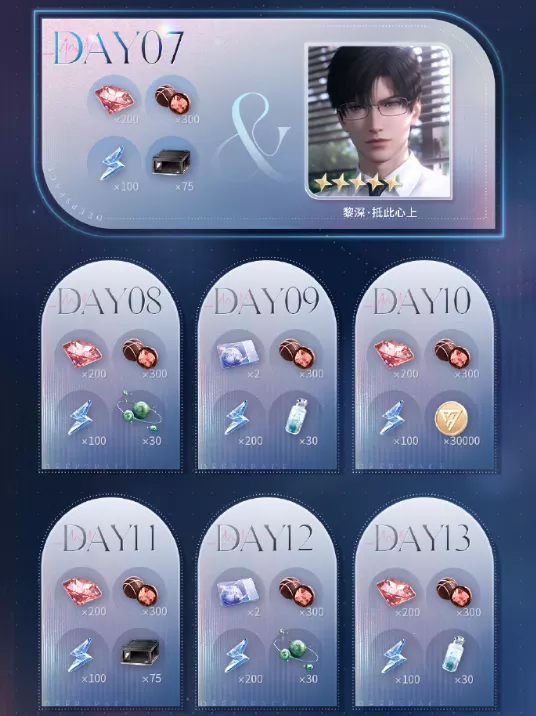 1、活动期间,累计签到7天,即可免费领取全新五星思念「黎深·抵此心上」。