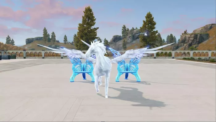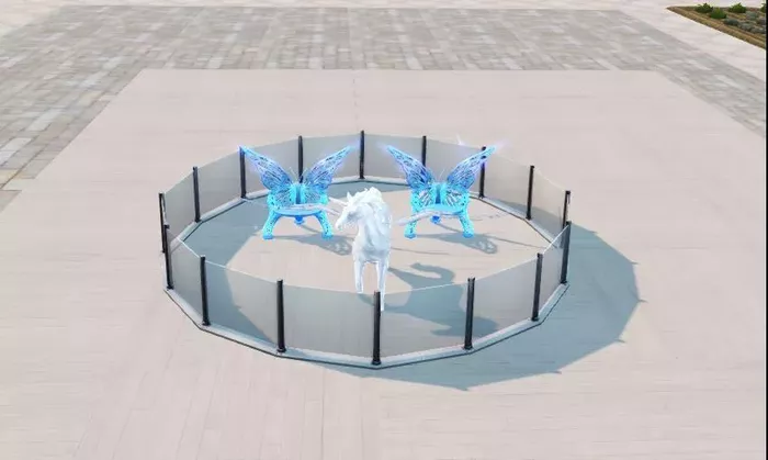 1、首先在2*2地板上摆放两张温室蝴蝶椅,继而在正前方摆放水晶独角马雕像。