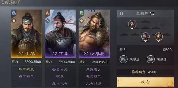 【于禁丁奉沙摩柯】兵力:10500 鱼鳞阵