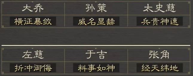 可选阵容:大乔 孙策 太史慈 / 左慈 于吉 张角