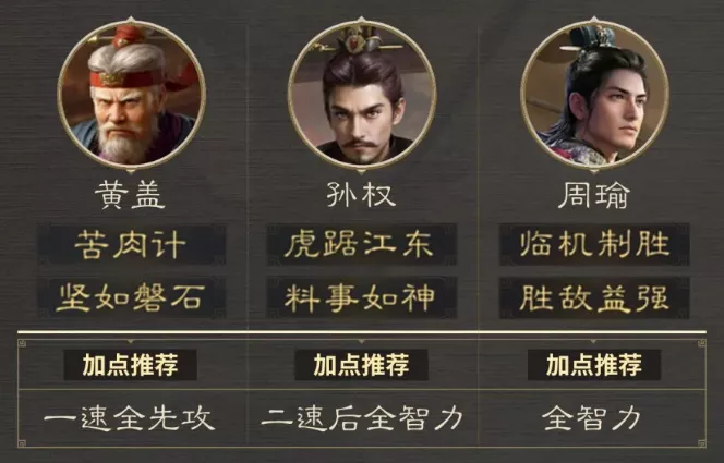 推荐阵容:黄盖 孙权 周瑜(箕形阵)