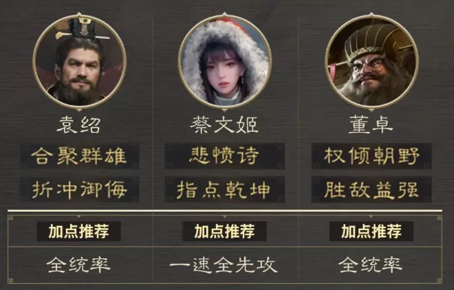 推荐阵容:袁绍 蔡文姬 董卓(偃月阵)