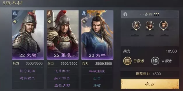 【文聘董袭刘晔】兵力:10500 一字阵
