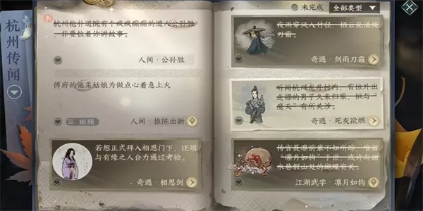 1、玩家需要先来到杭州的1370,1357位置处,在这里和npc进行对话后就允许解锁传闻。