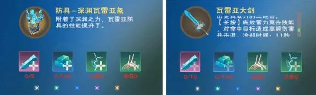 进阶装备的修复材料在原修复材料上多出一个材料,旧日钢矿、蠕行筋腱、结晶枝、海兽骸骨等