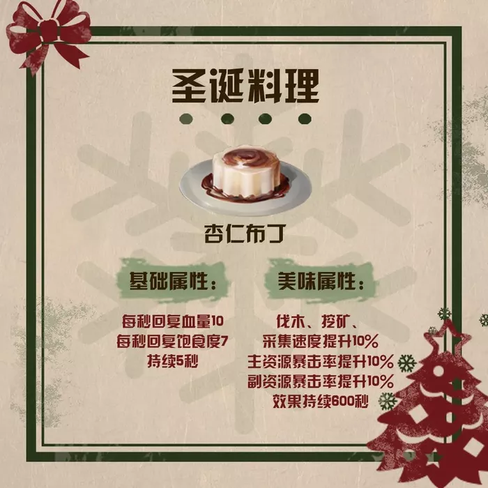 《明日之后》树根蛋糕杏仁布丁属性一览攻略,详细攻略如下:
