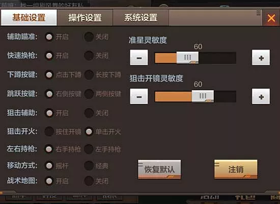 2.狙击瞄准篇 对于狙击的设置略与辅助瞄准不同,要减少狙击枪的失误次数,那就要在射击时充满自信。我调高了开镜灵敏度,在狙击射击上做了改动,将其改成单击开火。准星灵敏度也能够同第一个方法(副武器防身)