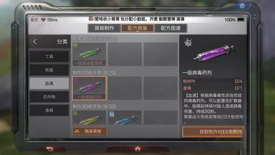《明日之后》一级病毒药剂制作配方表材料有哪些,详细攻略如下:
