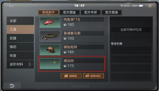 在随身配方——工具中可制作捕虫网,在夜晚时带上捕虫网去到狩狼野,就可行捉萤火虫啦!