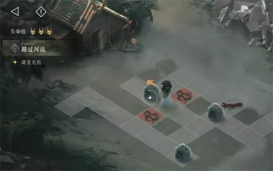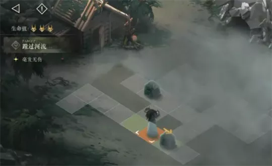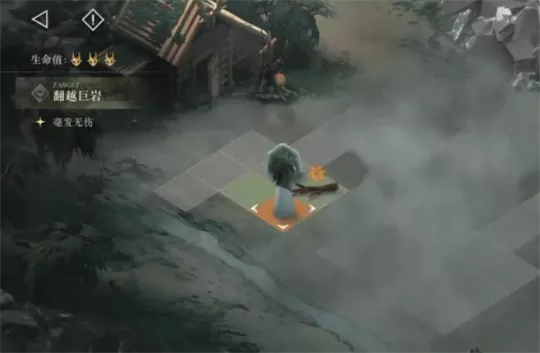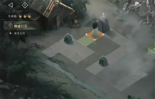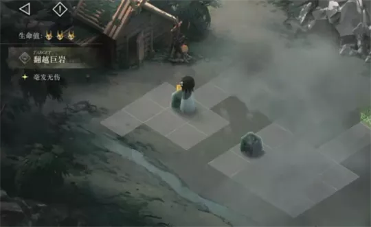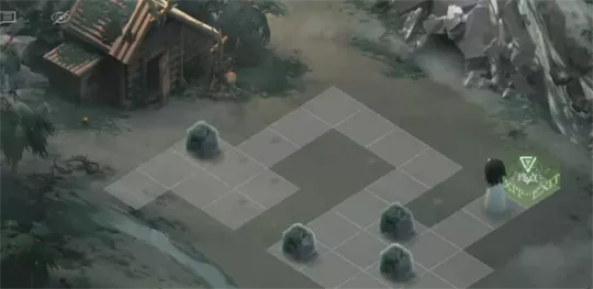 2、迷雾消散一部分后,角色移动到如今格子,将石头往左移。