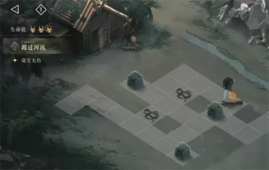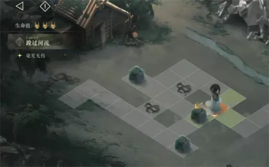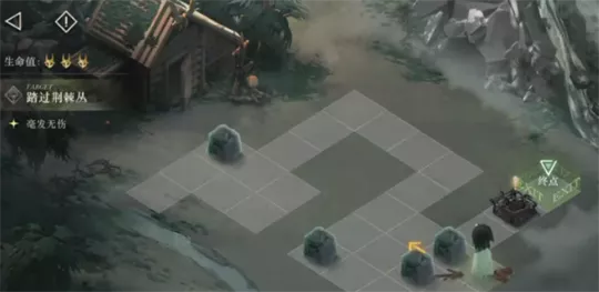 3、按照顺序分别移动三块石头,再踩断树枝。