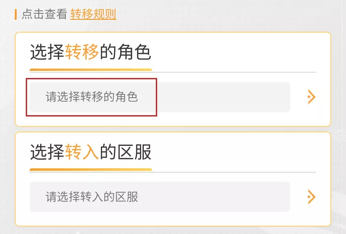 重点来了!第二次转服的玩家在进行转服操作时需要尤为注意一下,在选取转移的角色时,一定要选取有转服卡的那个大区。在安卓买的转服卡就选安卓的角色,在苹果买的转服卡就选苹果的角色,不要选取没有转服卡的大区。如果没选对大区的话,是无从进行第二次转服操作的。