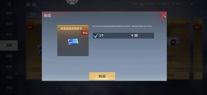 那么问题来了,转服后的大区是买不到角色转移卡的,玩家想回到原来的大区该怎么办呢?很轻易,我们刚才也说了,转服本来就是将两个大区的资源进行互换,转服后的直购商城里没有角色转移卡,那就去另一个大区的直购商城买嘛!