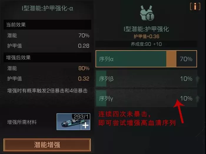 首先提高所需血清较少的序列,当连续四次都没有出现暴击时,就可以在同节点须要更多血清的序列进行加点,此时暴击的概率会增加。