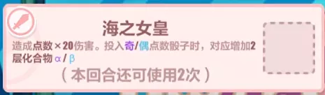 变身状态下的输出手法为:把骰子按点数从高到低依次放到【海之女皇·氧化反应】,记得留下最后一个骰子放【海之女皇·还原反应】)