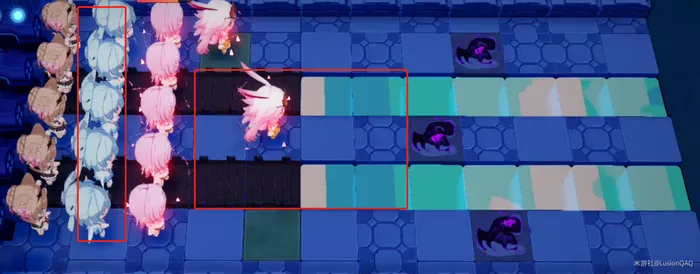 补齐第二列格蕾修,开始不第五列樱,第二第四行水路可以把板子补上;