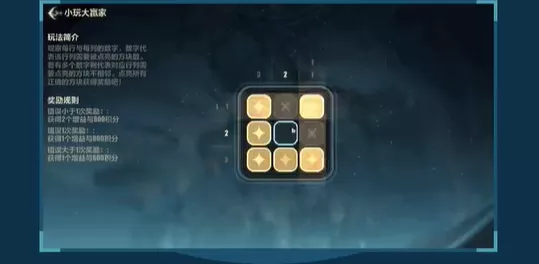 4、在小游戏地格中,需要完成图形数独解谜,基于数字提示,点亮所有正确方块,即可通关挑战。