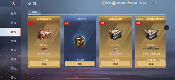 cfm币在商城直购中购买,价格是1元。