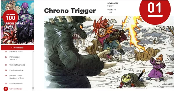 此前,IGN曾评价道:少年英雄的勇气和决心(结合鸟山明令人难忘的艺术风格)造就了令人难忘的角色……再加上多个结局和有史以来最伟大的游戏配乐之一,很容易理解为什么《超时空之轮》是我们有史以来排名第一的RPG。