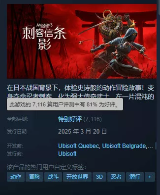 值得一提的是,《刺客信条:影》如今已成为刺客信条系列中人气极高的作品之一。回顾系列历史,人气颇高的《刺客信条:奥德赛》在Steam平台上的历史在线峰值为62069人。由此可见,《刺客信条:影》距离成为系列第一仅一步之遥,其未来表现令人期待。