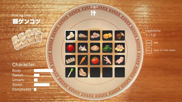 在《拉面模拟器》中,从汤底原料、面条种类、酱汁、香油到各种配料,全部可由玩家自由选择。玩家既可以用常见食材制作传统拉面,也能大胆尝试创造前所未见的独特拉面,并通过独创的拉面菜单展现个人风格。