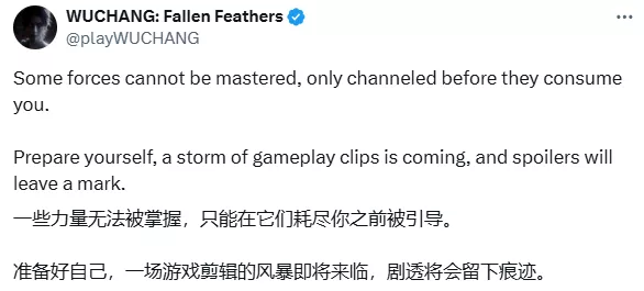 官方配文:“有些力量无法被征服,只能在其吞噬你之前加以引导。做好准备,大量的游戏片段展示即将到来,而剧透将会留下一些印记。”