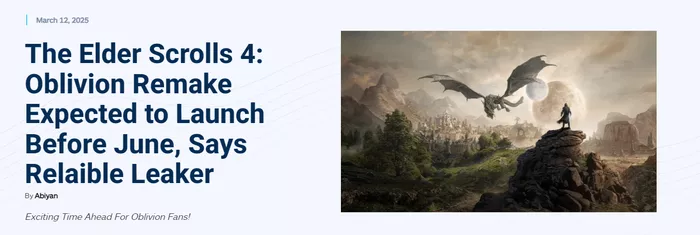 NateTheHate表示,《上古卷轴4:湮没》重制版的发售时间可能早于最初计划的6月,并透露:“要么是这个月,要么是下个月。游戏的发售时间可能会早于原定的6月目标,但具体的更新日期仍在确认中。”